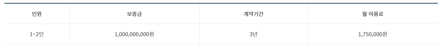 입주를 하기 위해 보증금은 10억이며 계약기간은 3년이고 월 이용료는 175만원입니다.