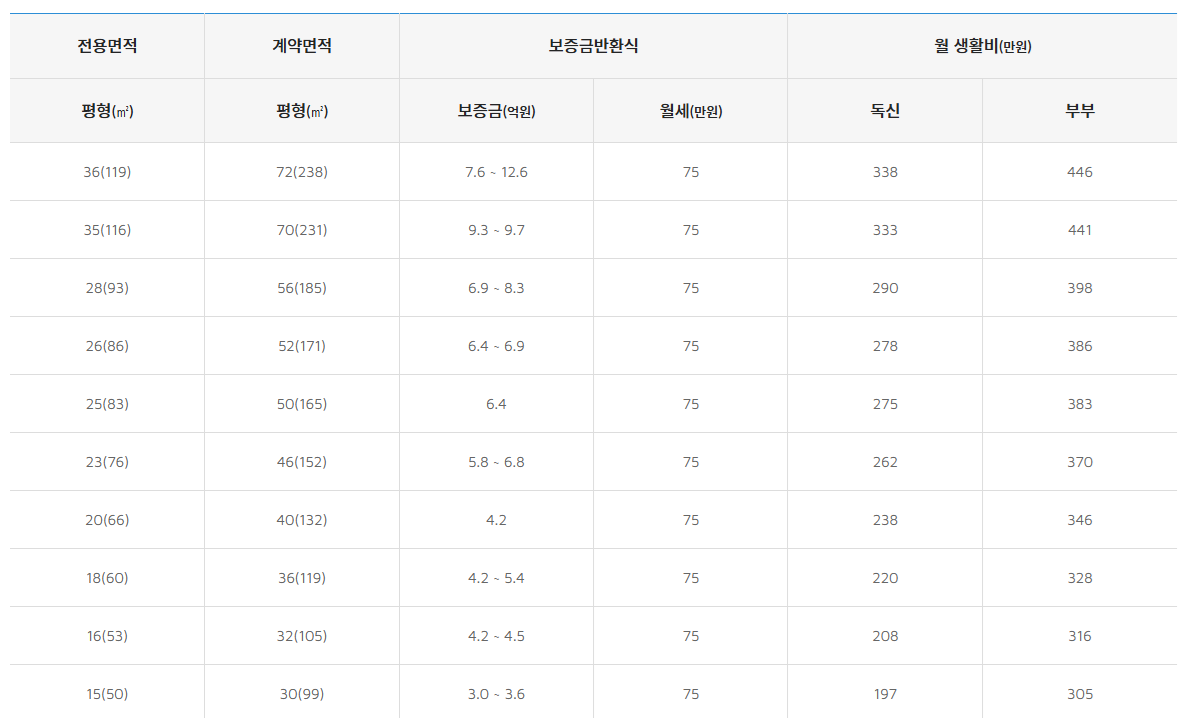 입주비용은 타입에 따라 보증금이 있으며 생활비에는 일반관리비에 의무식비용이 포함되어 있습니다.