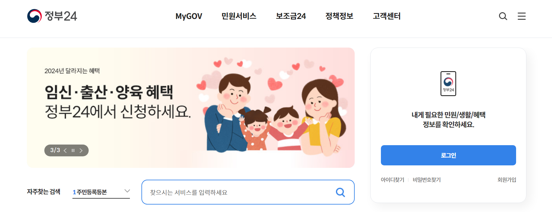 1)정부 24홈페이지 접속하기