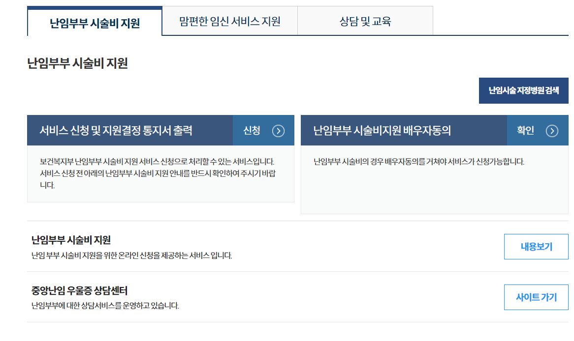 아래에 난임부부 시술비지원이 나옵니다.